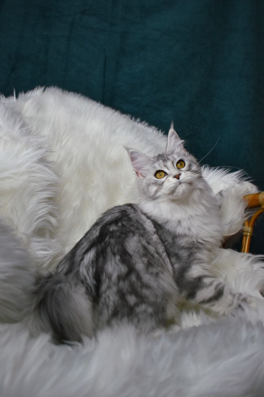 Say hello to Diana, a sweet and elegant female Maine Coon kitten. Raised with love and expert care, she’s one of the finest Maine Coon kittens for sale, ready to bring warmth and affection into your home.